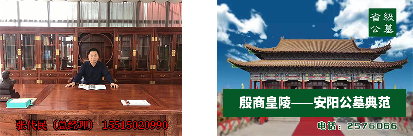 安陽殷商皇陵公墓,2006年2月28日經(jīng)河南省民政廳批準(zhǔn)(豫民文【2006】34號(hào))的合法公墓,國有土地使用證(安國用【51】第1355號(hào)),是省重點(diǎn)工程項(xiàng)目。公墓于2008年12月榮獲”河南省十佳陵園”;2009年元月榮獲“安陽誠信之星”;2009年4月榮膺“全犀殯葬行業(yè)十佳陵園”稱號(hào),“公墓定位為河南省高端公墓”,“安陽的八寶山”。  公墓坐落于安陽市龍安區(qū),馬投澗鎮(zhèn)郭大岷村村東鳳凰崗上,占地40000余平方米,距市區(qū)6公里,交通方便,道路四通八達(dá)。  公墓于2006年成立,起步高,選用碑型、碑石都是行業(yè)精品,碑石為花崗巖堅(jiān)硬耐風(fēng)化,與當(dāng)?shù)厥耐耆煌.a(chǎn)品價(jià)格分高、中、低三個(gè)檔次,滿足不同客戶的需求,同類產(chǎn)品在合法公墓中定價(jià)較低,公墓的經(jīng)營策略是低價(jià)入市,讓利客戶,培養(yǎng)市場(chǎng),公墓每年的下葬率在行業(yè)中屬于較高的了,現(xiàn)場(chǎng)參觀一目了然。